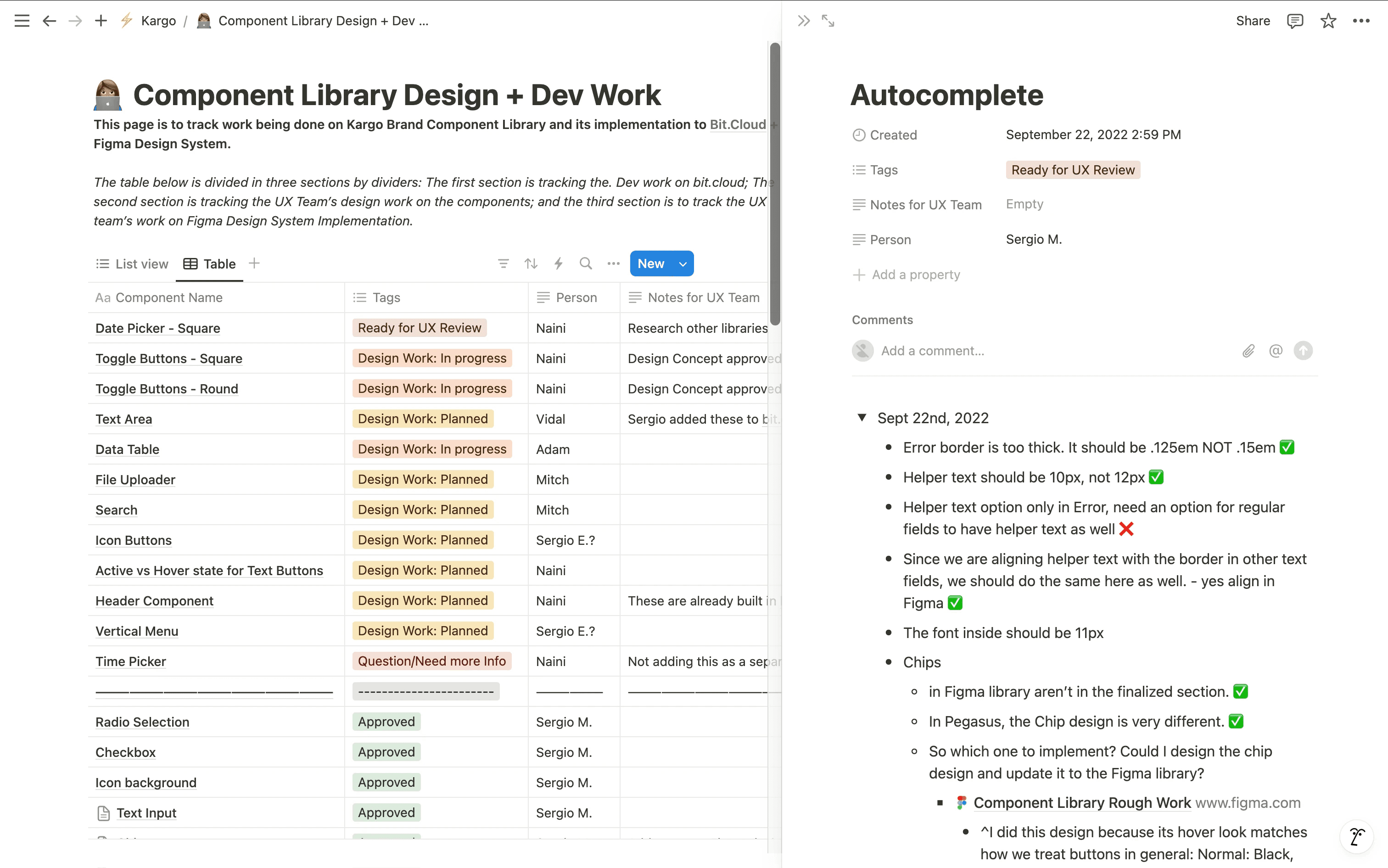 Created a tracking system on Notion to organize component work from design to implementation.